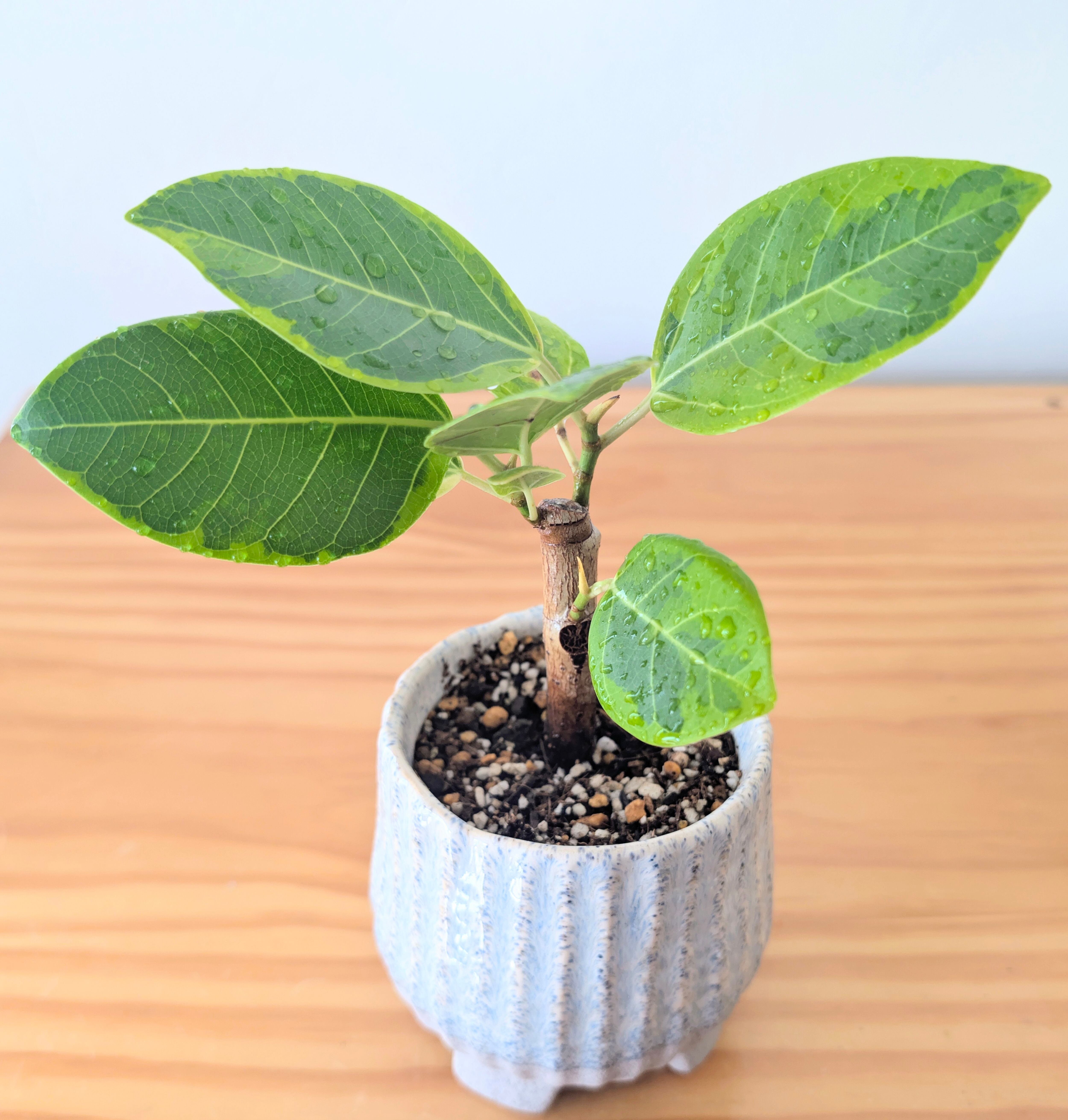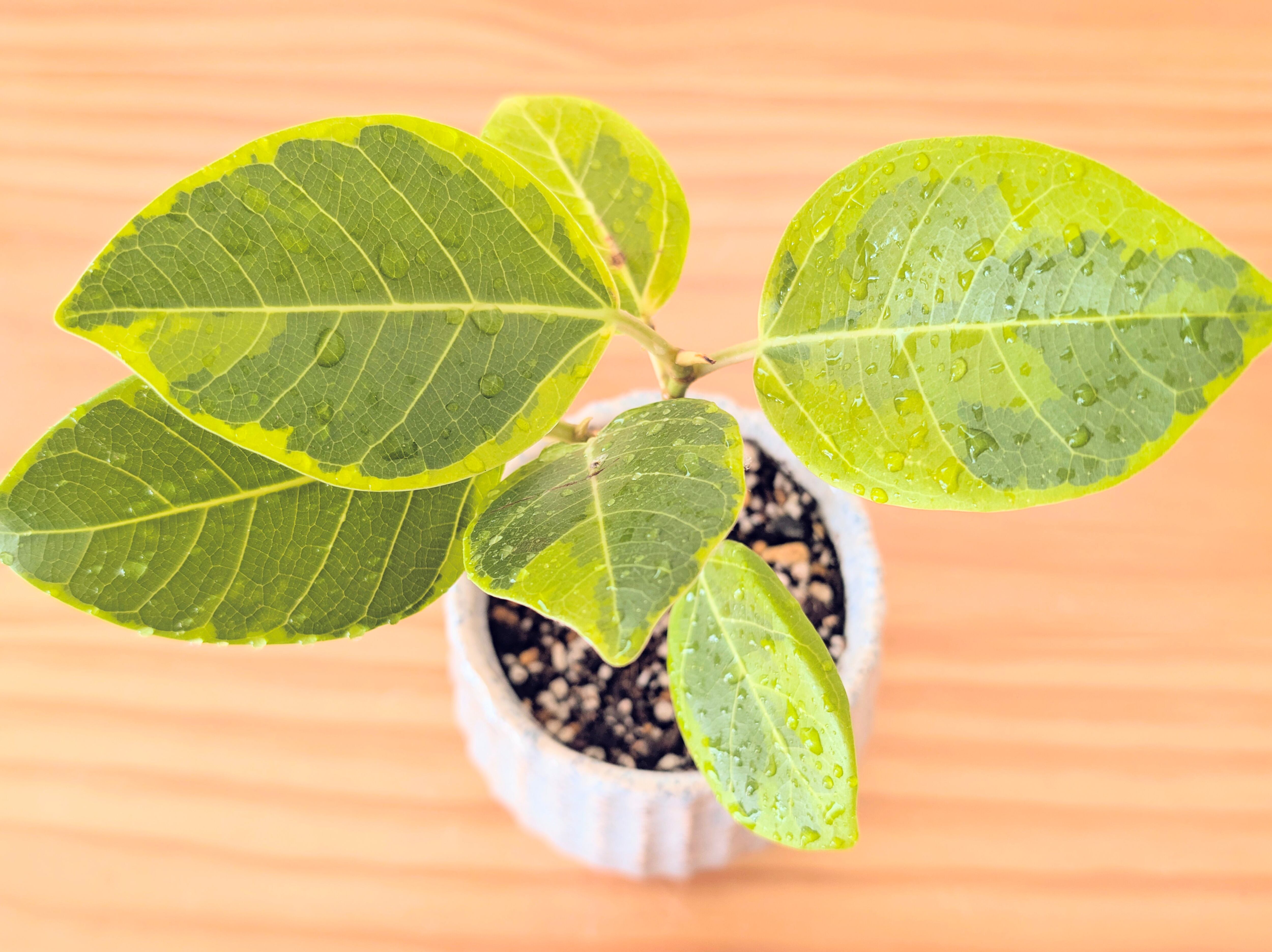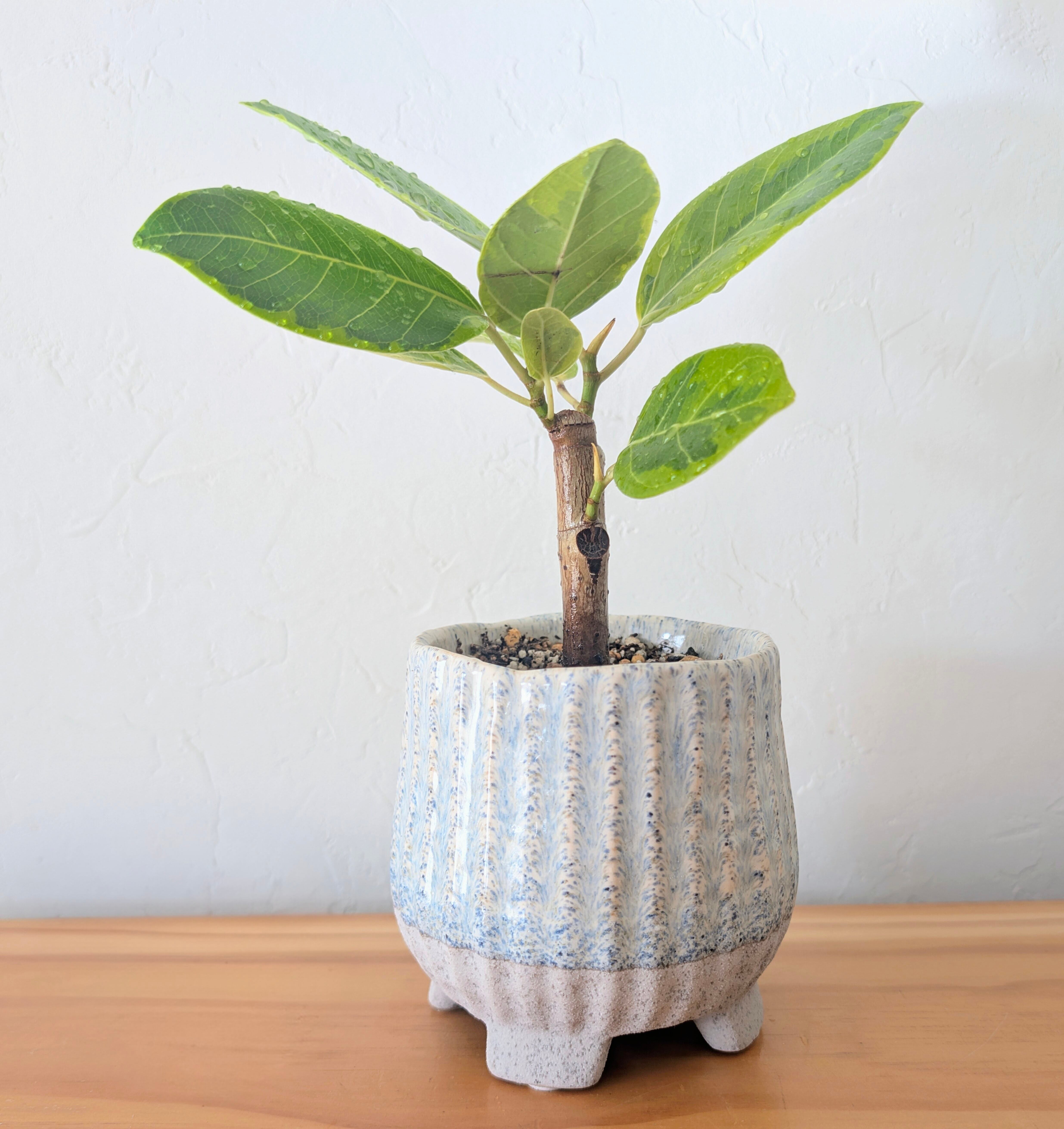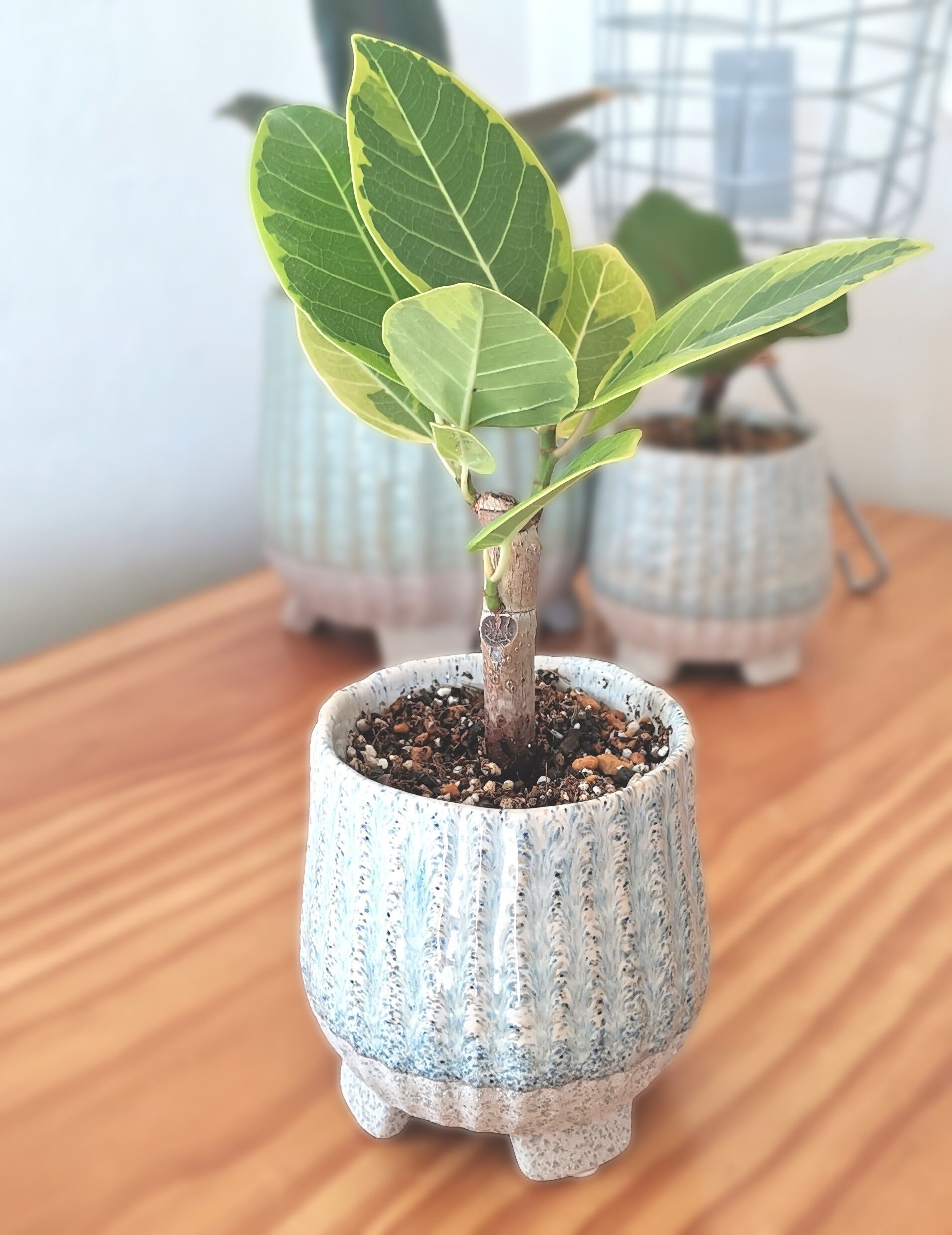 【フィカス アルテシマ 斑入り 陶器ポット 足付き】