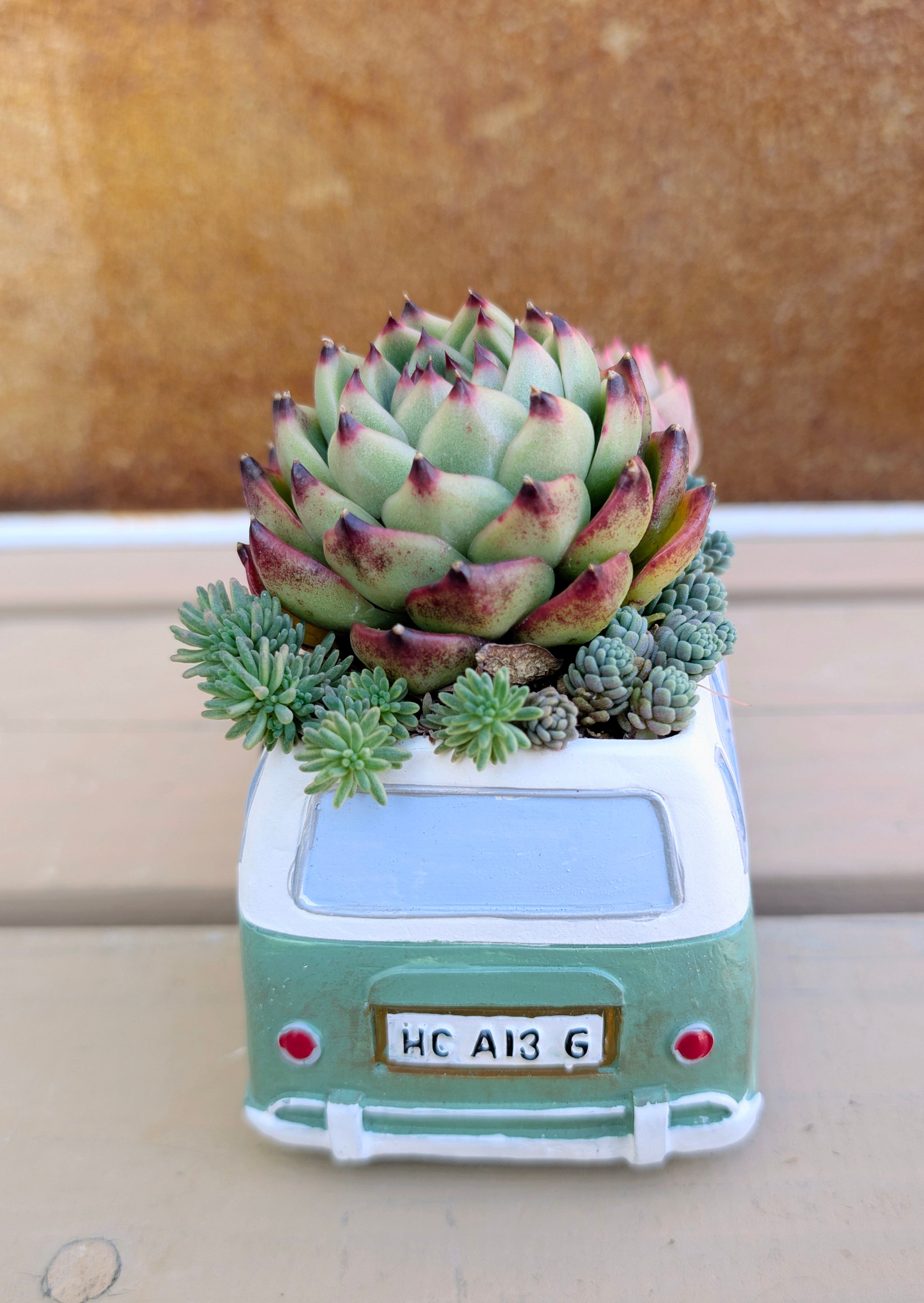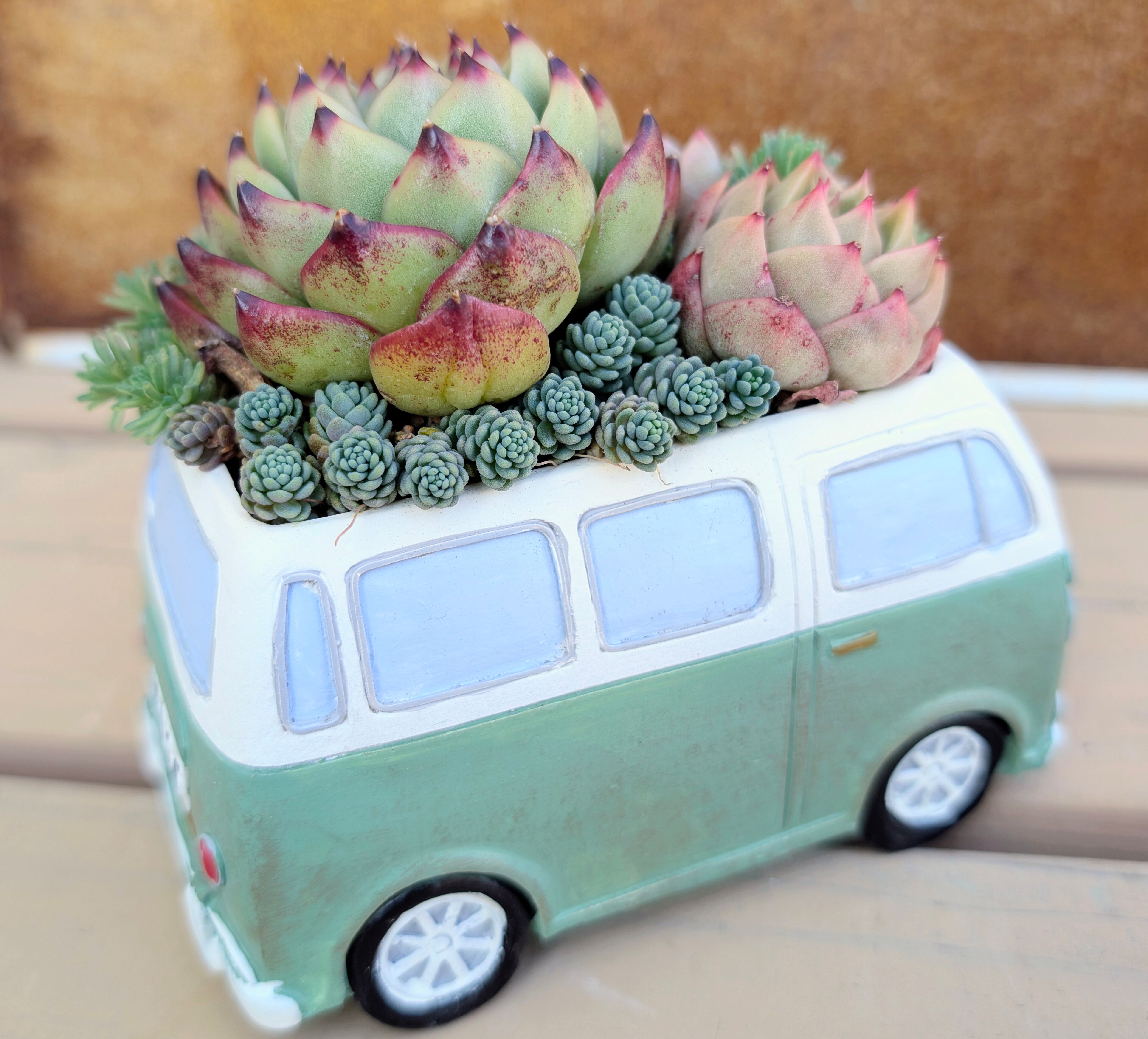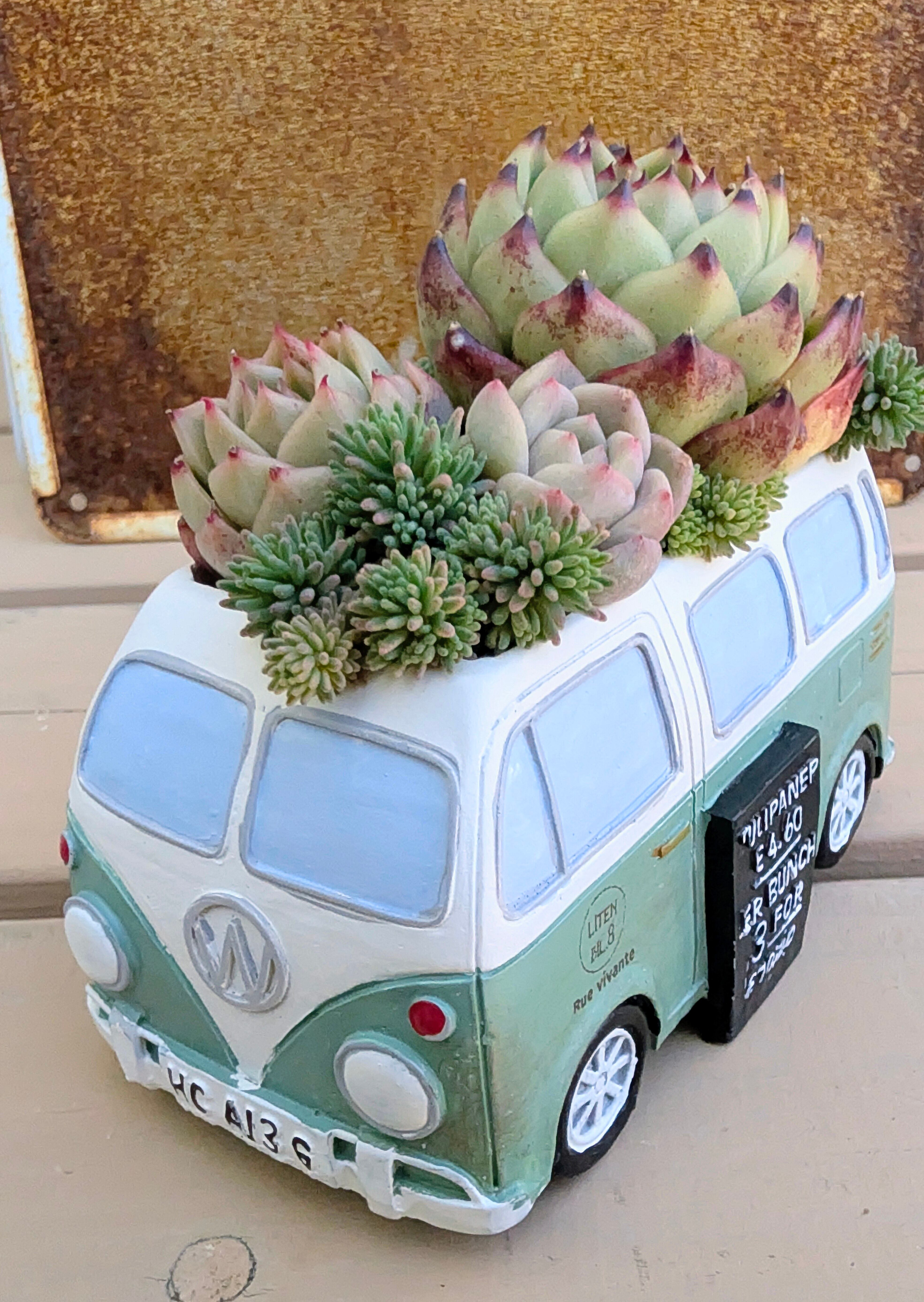 a45. ワーゲンバスポット グリーン 寄せ植え 多肉通販 宅急便発送