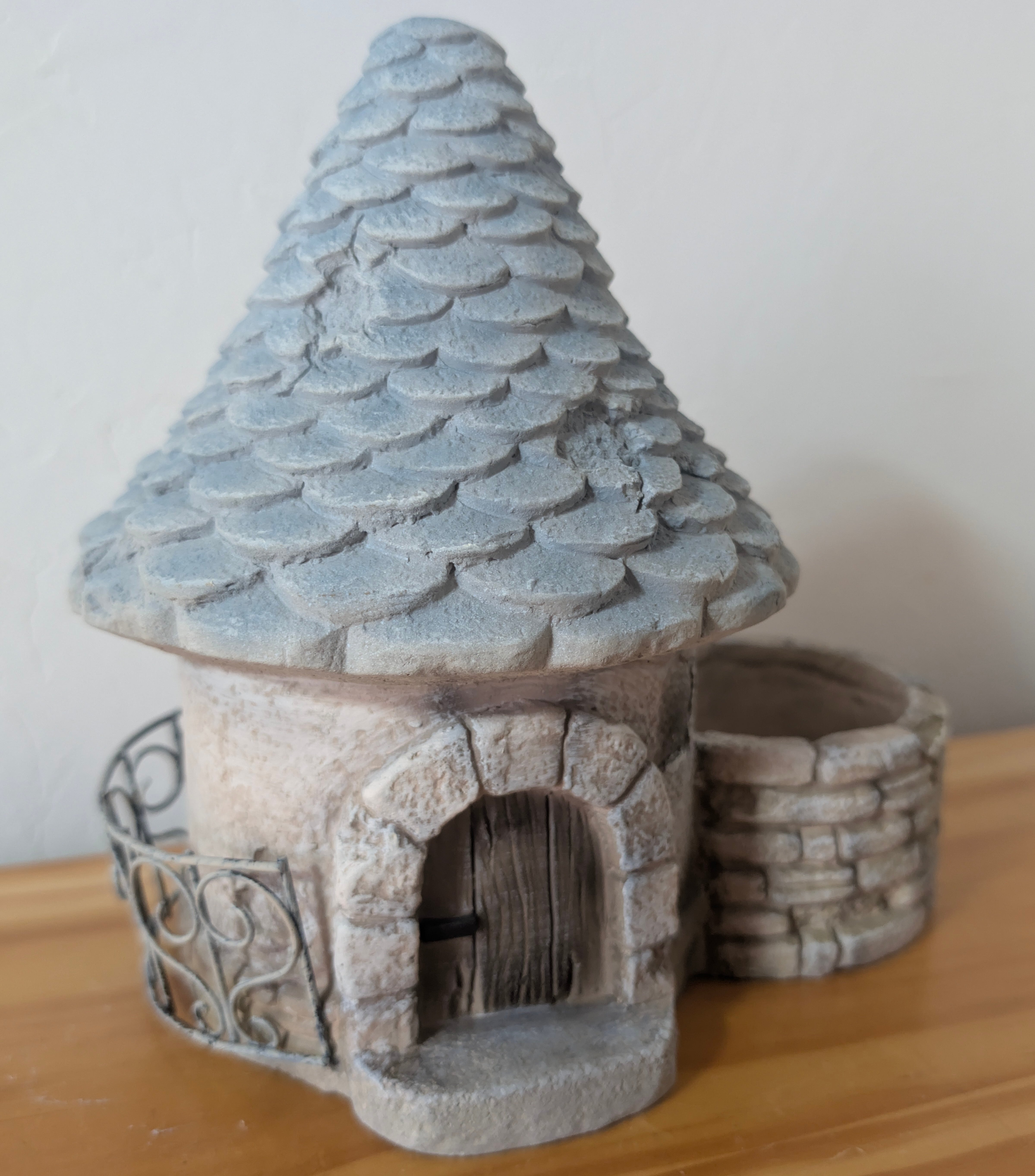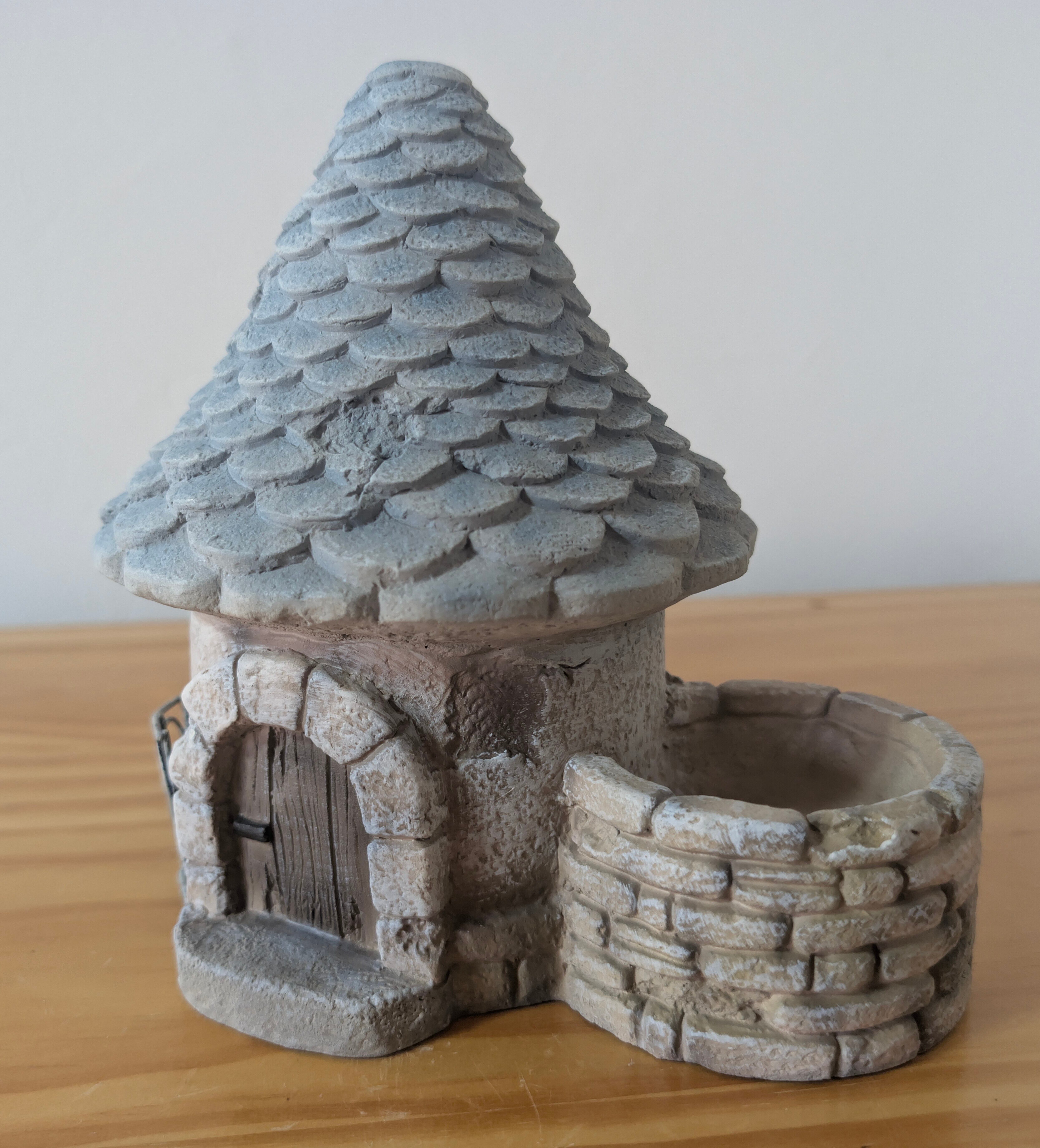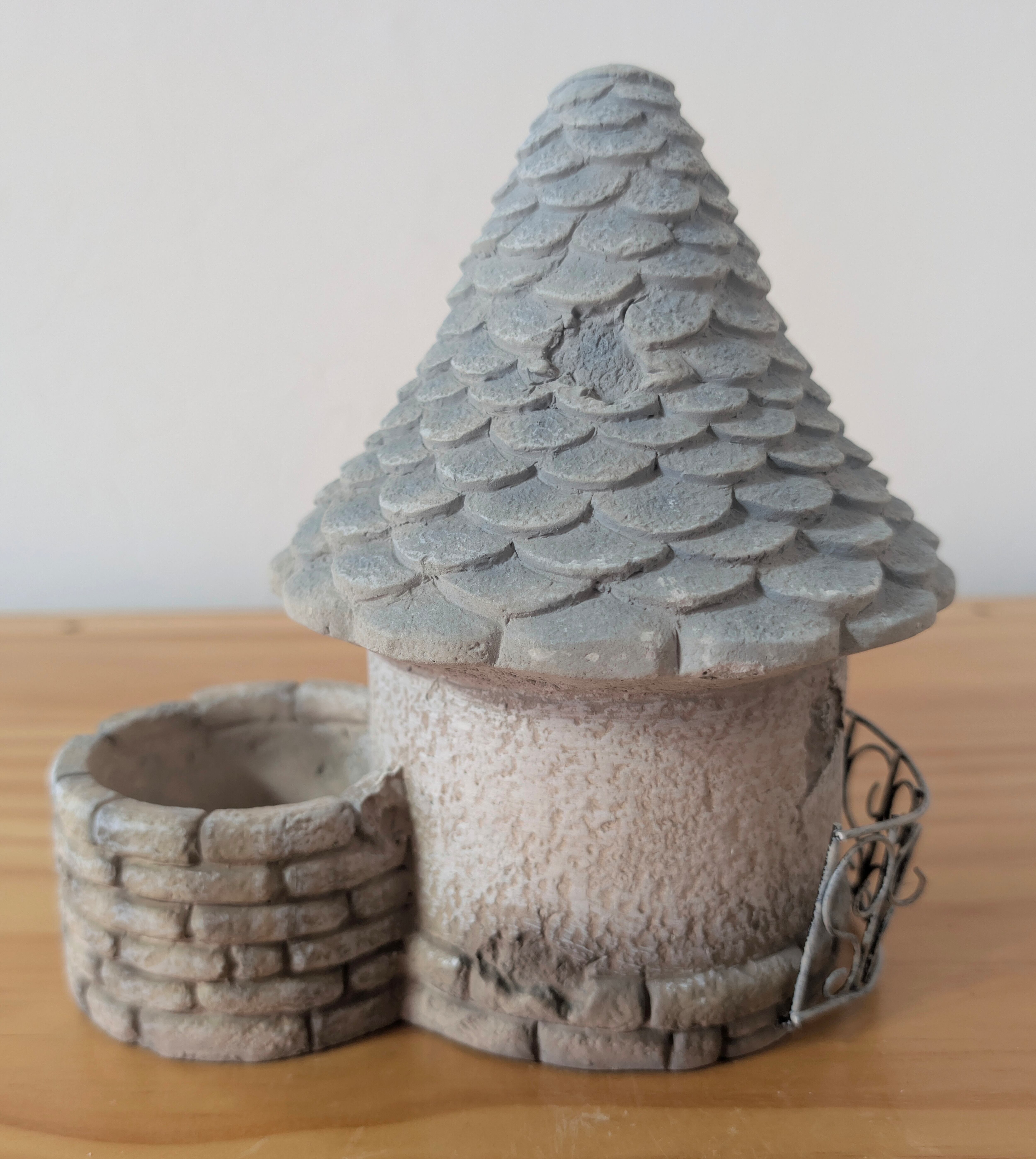 【とんがり屋根のフラワーポット セメント】 底穴あり ブルーベージュ 多肉寄せ植えポット